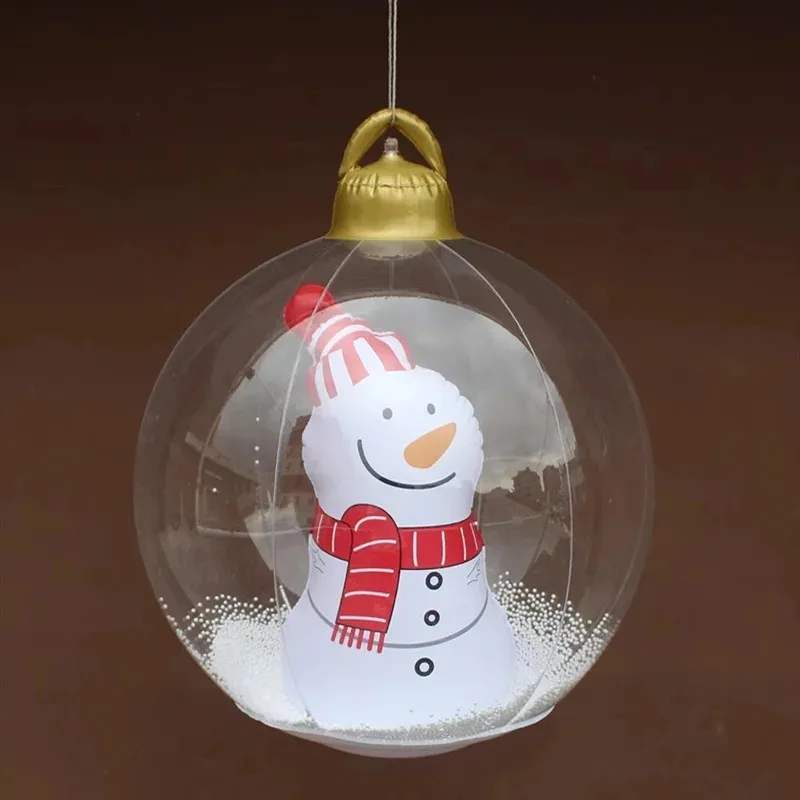 60cm Outdoor LED Christmas Inflatable Decorated Ball PVC Transparent Giant Big Large Balls Xmas Tree Decorations Toy Ball 2024