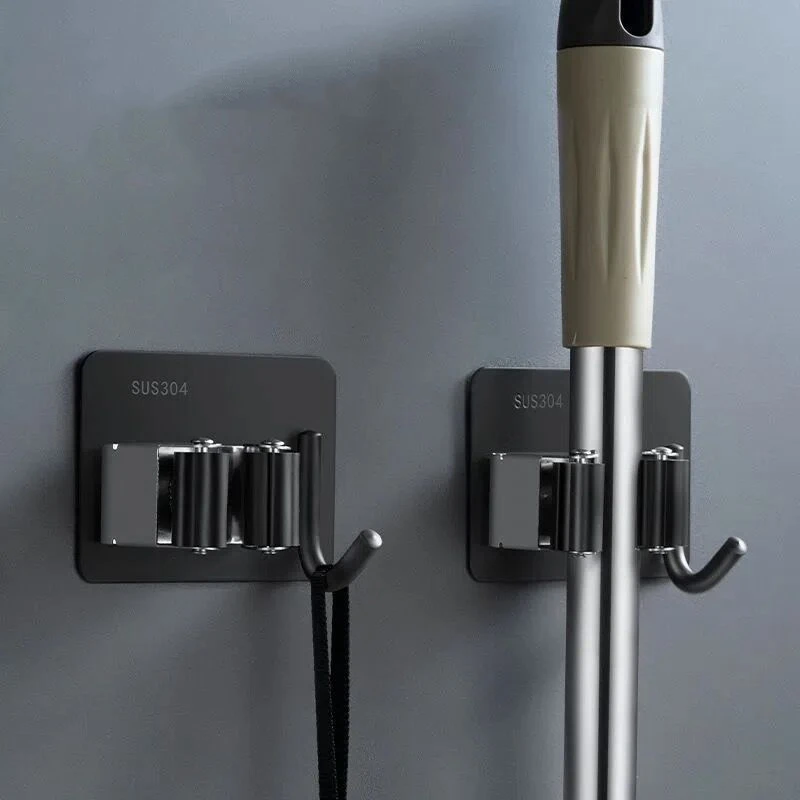 Multi-Purpose Hooks Adhesive Wall Hanging Mop Rack Broom Hanger Hook Kitchen Bathroom Organization Home Organizer Accessories