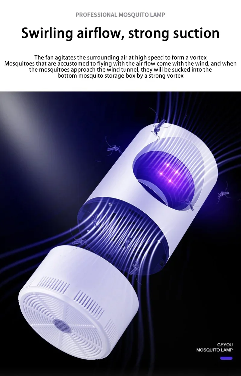 Professionally work on mosquitoes and insects: Electric fly killer handles almost uncomfortable issues from mosquitos, wasps and insects. The mosquito trap uses an ultraviolet bulb which attracts all flying insects into the mosquito trap by powerful high voltage electrically charged metal grid to kill insects immediately.
