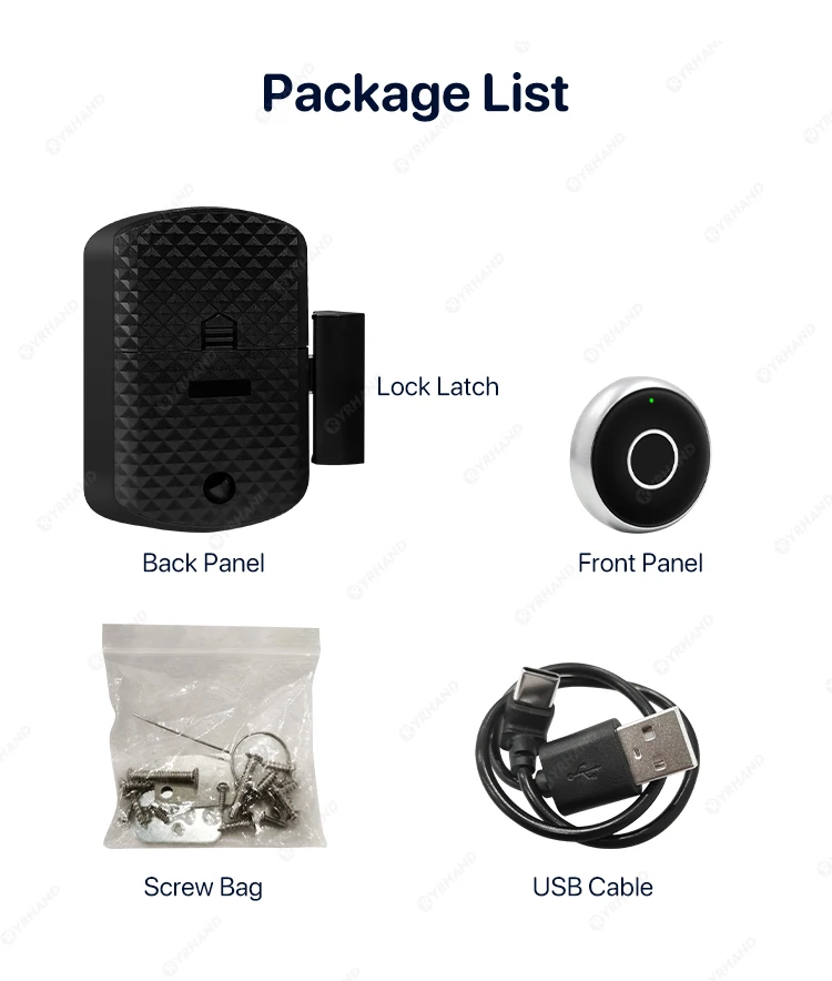 Package includes: 1 set of fingerprint cabinet lock with necessary accessories