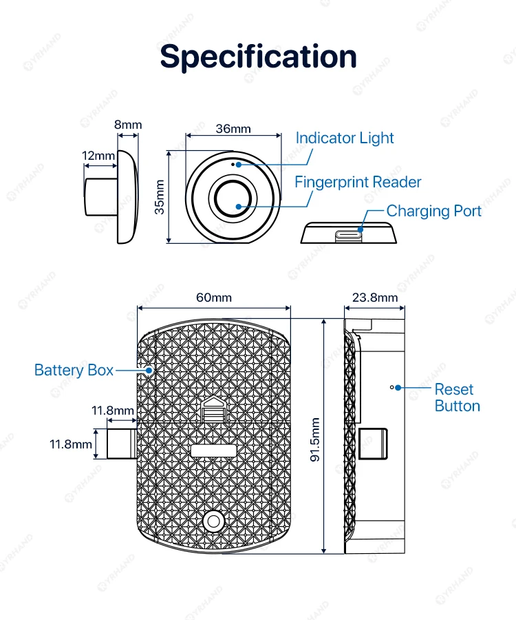 YRHAND Keyless Fingerprint Drawer Cabinet lock
