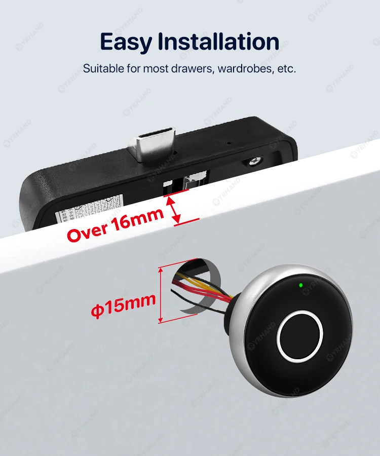 The YRHAND Keyless Fingerprint Drawer Cabinet lock is the perfect solution for home and office security. With advanced fingerprint technology and wireless capabilities, this electronic lock ensures a secure and convenient access to your drawers and cabinets. Trust in our expertise and say goodbye to traditional keys and codes.